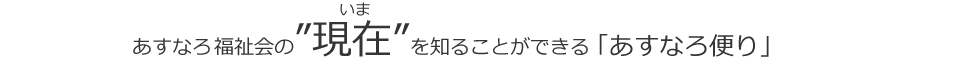 あすなろ便り 51号 最新号発刊!! 今回の「あすなろ便り 51号」では、中村援護会長のごあいさつに始まり、 平成29年度の作業工賃のご報告、樋口理事長のラジオ出演、知内FDセンター開設のご報告、旅行、イベントなどのホームページには載っていない情報も盛りだくさんになっています。 表紙は、7月にオープンしたグループホームの「ケアホーム柳崎」です。