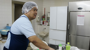 利用者の利用希望と共に年々増え続けた給食数も、今では1度に製造する数が290食となった。製造から配達まで利用者の適正に合わせ作業を展開している。調理だけでなく、配送作業は男性利用者から人気の作業の一つになっている。