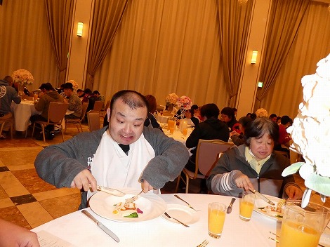 | 食事の最後には、「又、一生懸命働いて、遊びに来ようね。」で締めくくりました。 来月には、コロッケのコンサートがあるとか・・・・・。 皆さん、楽しみにしているようです。実は、職員もです・・・・。 |