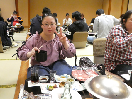 | 昼食 2班に分かれて食事をしました。 わんこそば 35名 盛岡冷麺・焼肉チーム 65名 (店名:ぴょんぴょん舎)※盛岡で1番有名な冷麺のお店です。 |